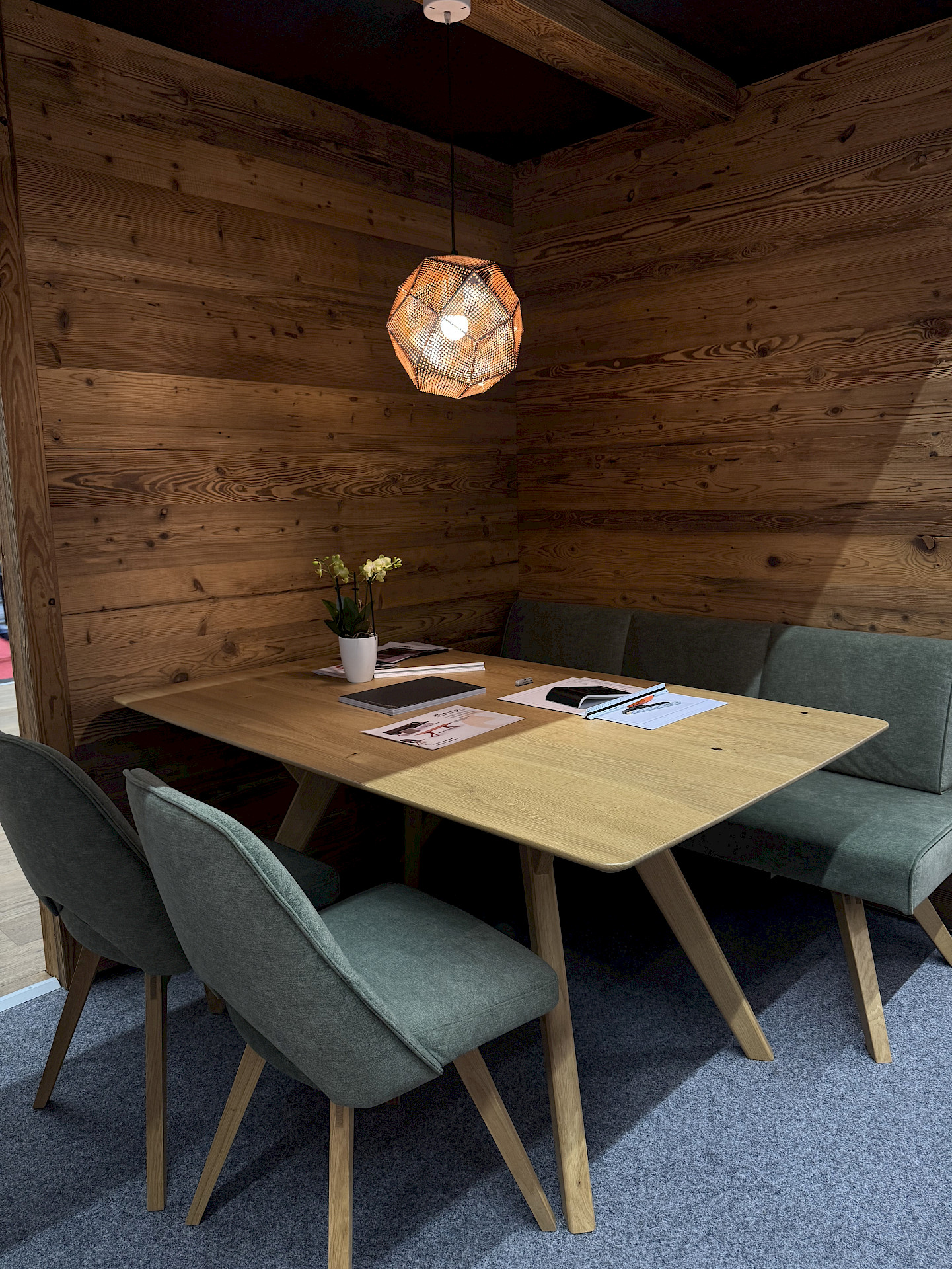 Moderne Essgruppe im skandinavischen Stil – gemütlich, elegant und zeitlos.