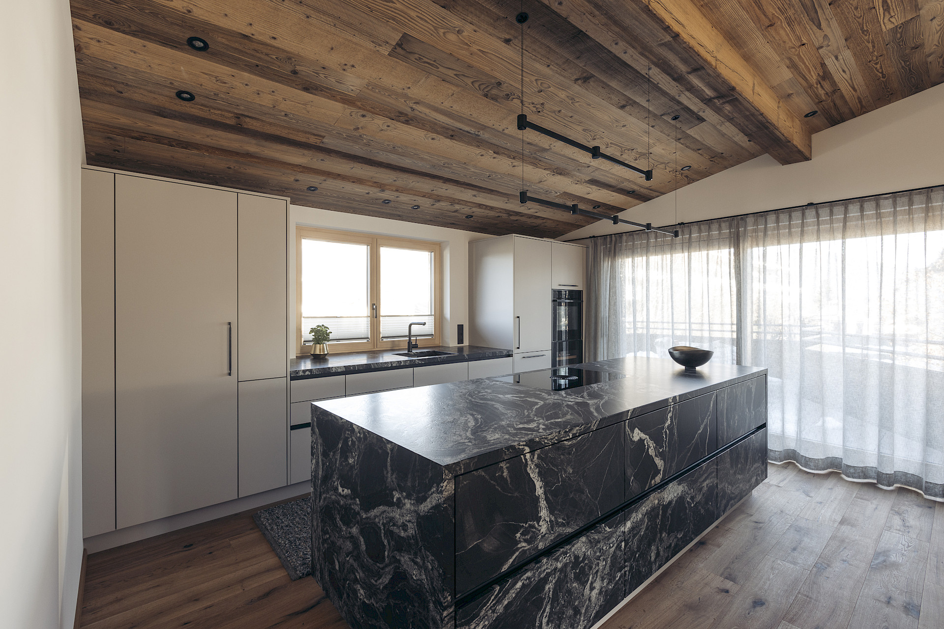 Ein wahres Einzelstück inmitten der Wohnung - ein ausergewöhnlicher, dunkler Stein verleiht diesem Raum Charakter und Eleganz. Es ist nicht nur ein Blickfang, sondern vereint Design und Funktion.