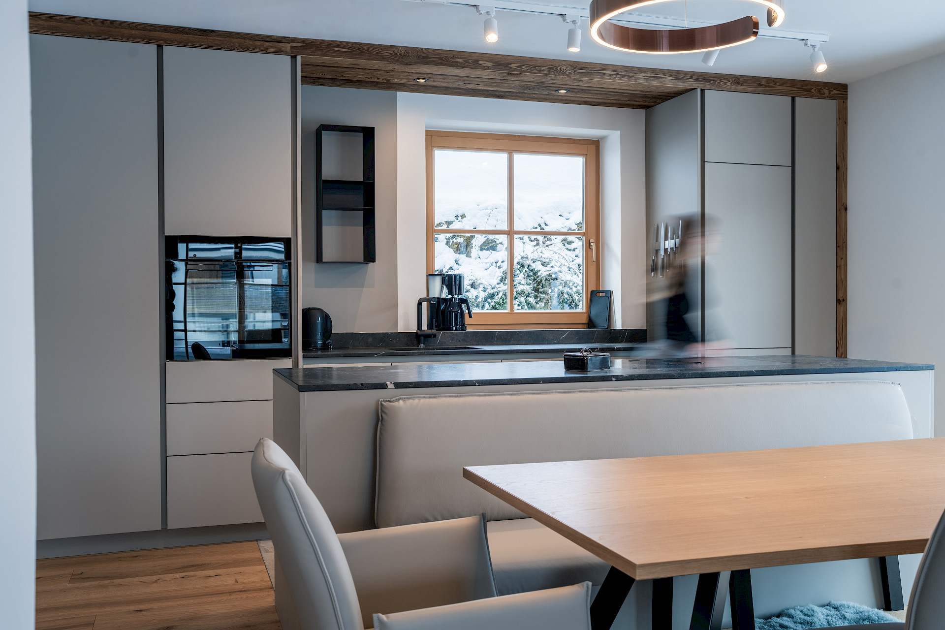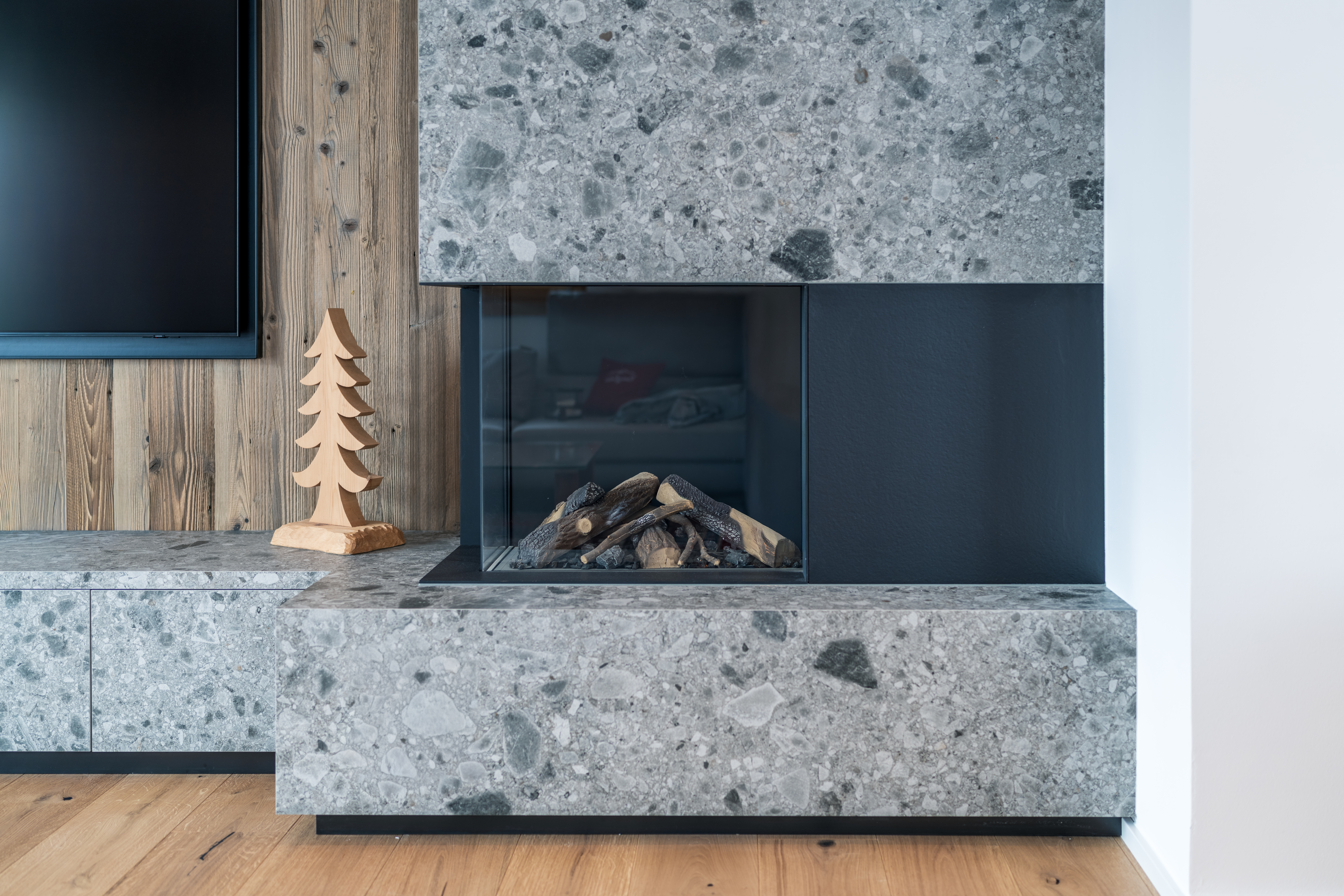 Ein Ort zum Ankommen und Durchatmen – warmes Holz, sanftes Licht und die Ruhe des Winters schaffen eine Atmosphäre voller Geborgenheit. Hier wird aus Raum ein echtes Zuhause.