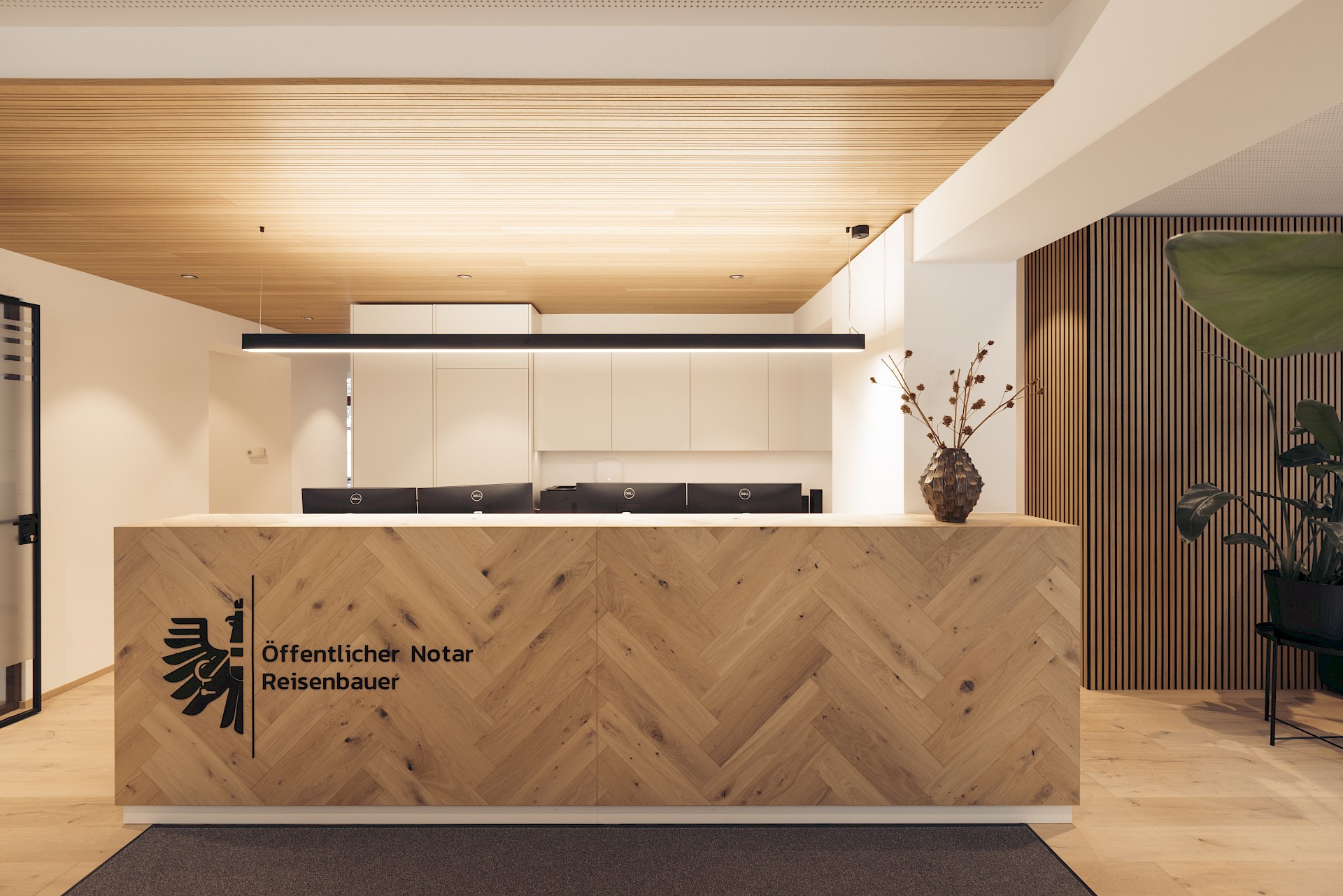 Ein Notariat, das Moderne und Eleganz verbindet. Zeitloses Design, natürliche Materialien und eine einladende Atmosphäre schaffen den perfekten Raum für kompetente Beratung und vertrauensvolle Gespräche.