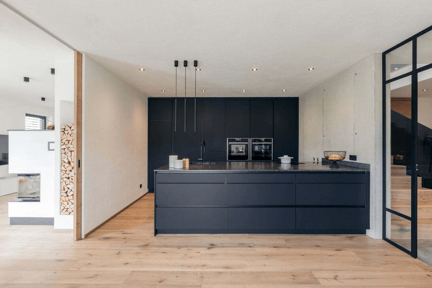 Diese Küche ist ein Meisterwerk des minimalistischen Designs. Sie verkörpert die Kunst des Wesentlichen und schafft einen Raum, in dem Kochen zu einem Erlebnis wird - in einer Atmosphäre von Ruhe und Stil.